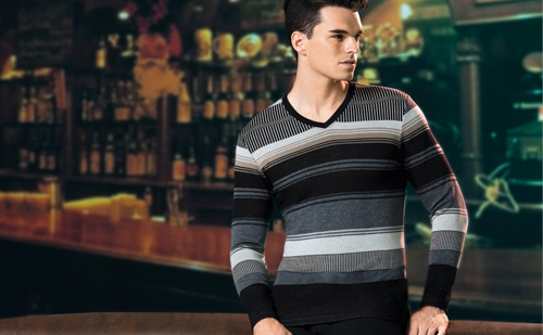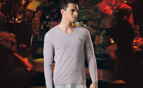 彩條自由裁 B274513 男彈力彩條無痕V領套裝